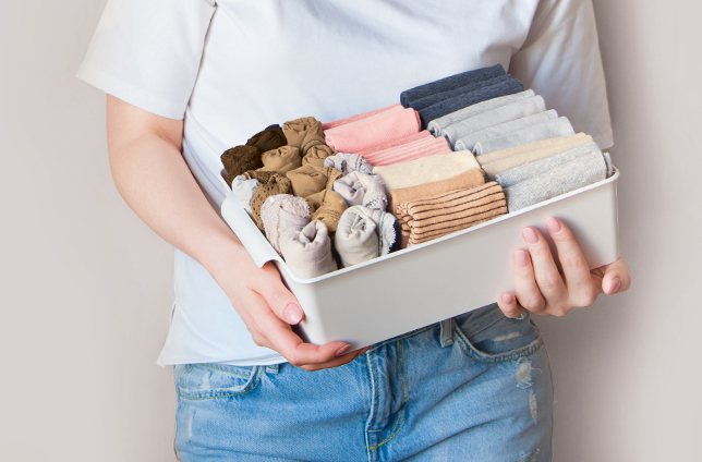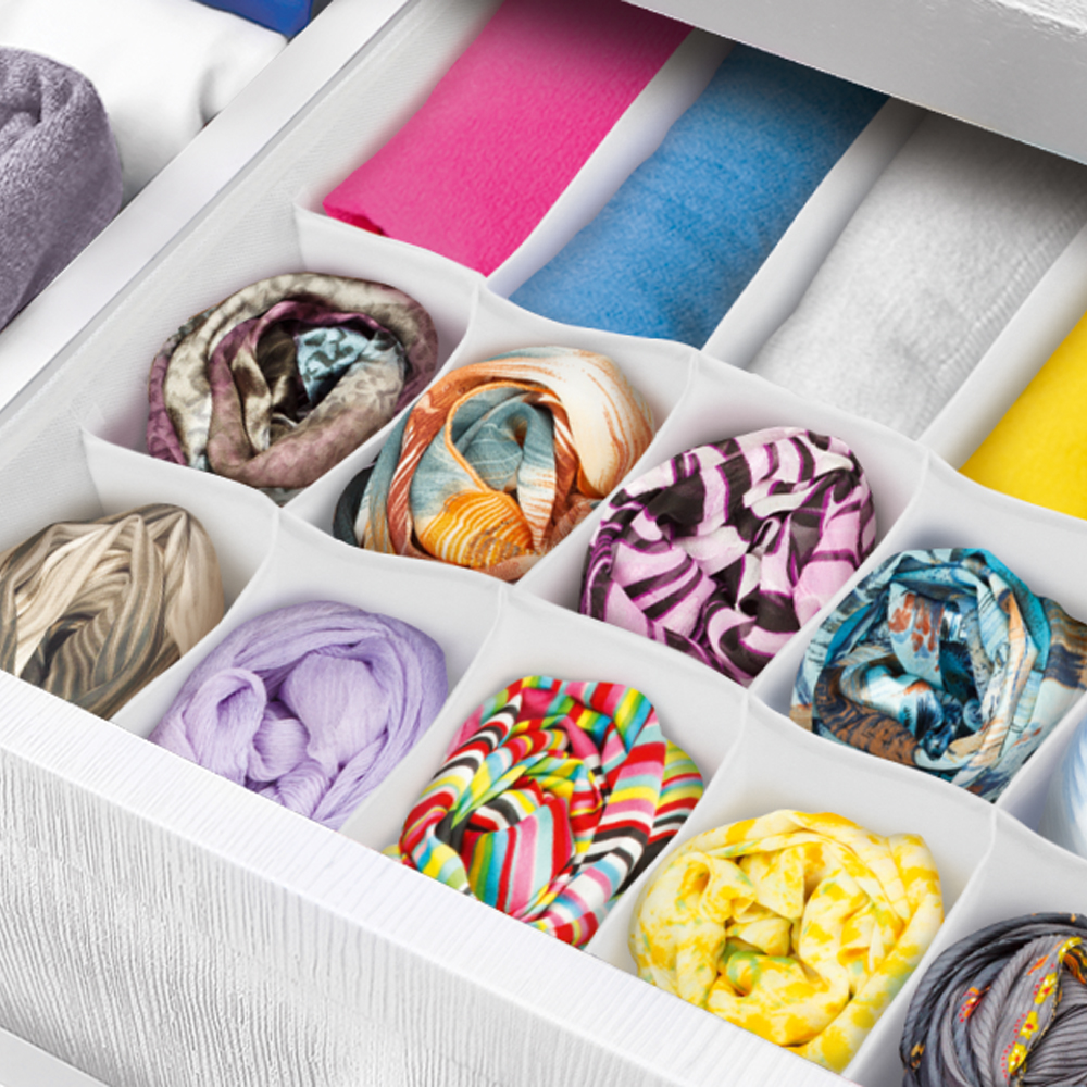 Используйте наборы складных коробок с крышками, чтобы упорядочить хранение внутри шкафа. Сочетайте коробки и корзинки для трикотажа с органайзерами для белья, чтобы добиться идеальной функциональности.
