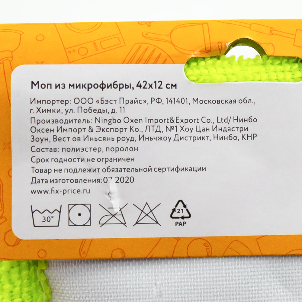 Моп из микрофибры с коротким ворсом 42х12 см